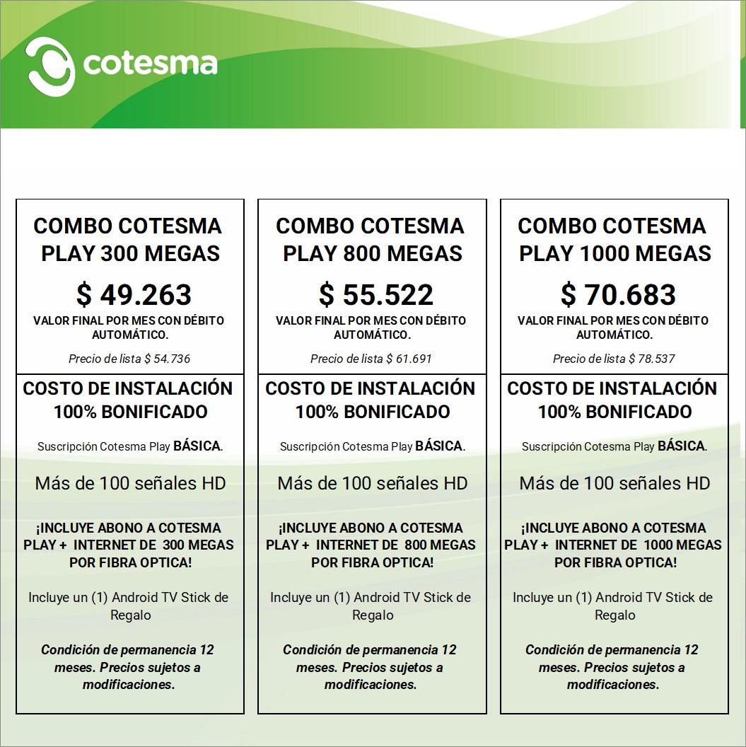 Todo cliente de Cotesma que ya posea o contrate Internet por Fibra Óptica, puede solicitar el servicio y acceder a los contenidos a través de la Plataforma Multidispositivo.