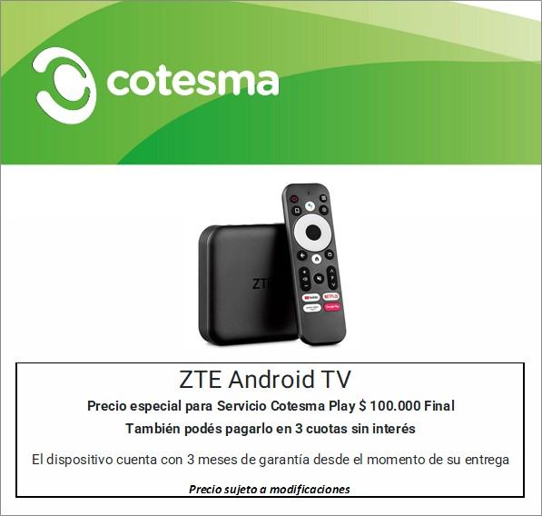 El Android TV Box es un dispositivo que te permite convertir un televisor común en un Smart TV, mediante el sistema Android, y así podés disfrutar de los contenidos de Cotesma Play con total comodidad.