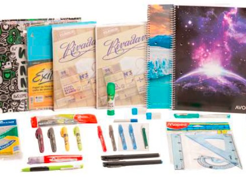 5 mochilas conteniendo un kit de útiles escolares para alumnos del ciclo secundario (ver detalle al pie)